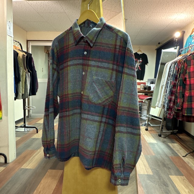70s Friendship -友誼- オールパターン バンドカラー フランネシャツ ユーロ古着 長袖シャツ フレンチチャイナ D561