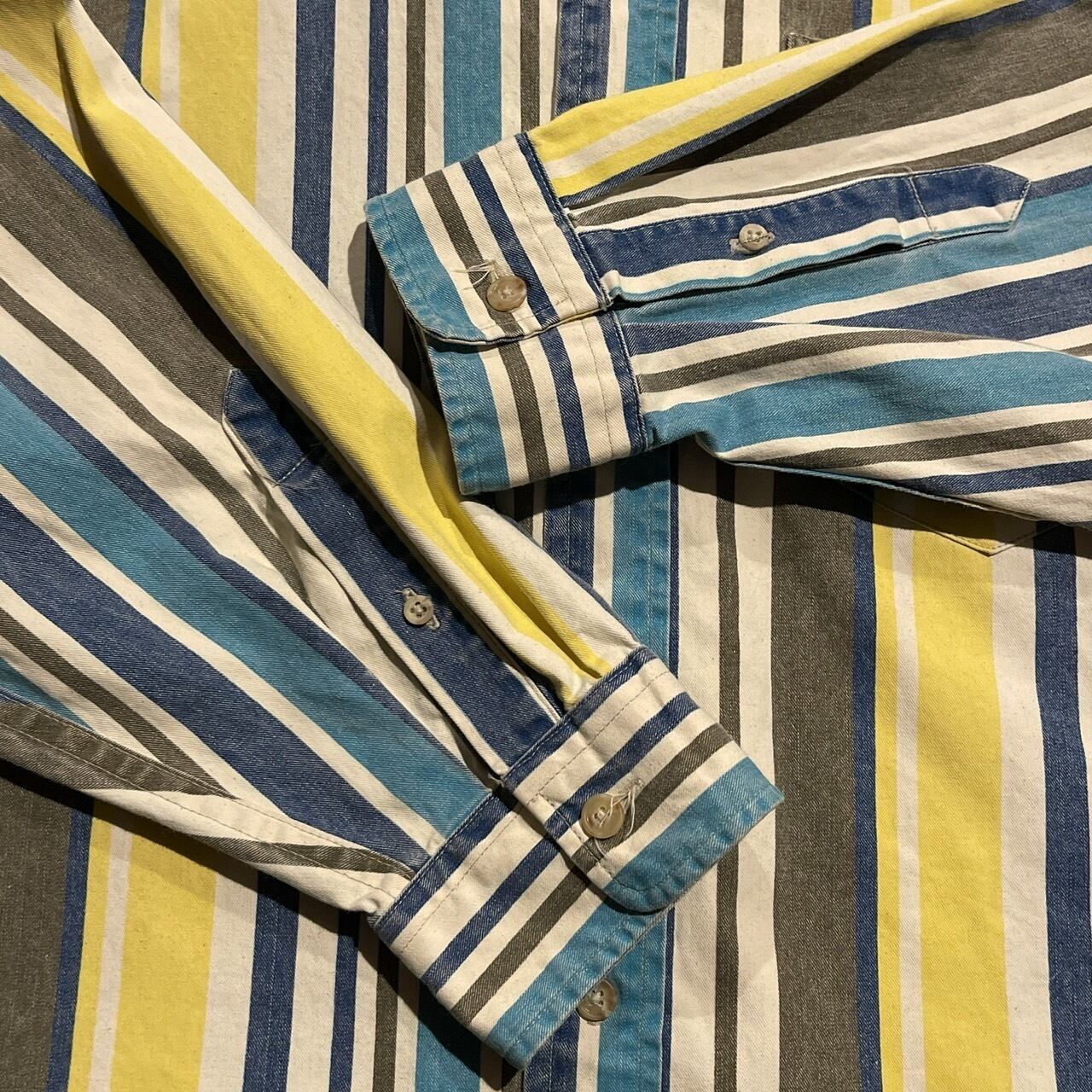 80s RUFF HEWN USA製 マルチストライプ ボタンダウンシャツ C732 長袖シャツ ラフ ヒューン