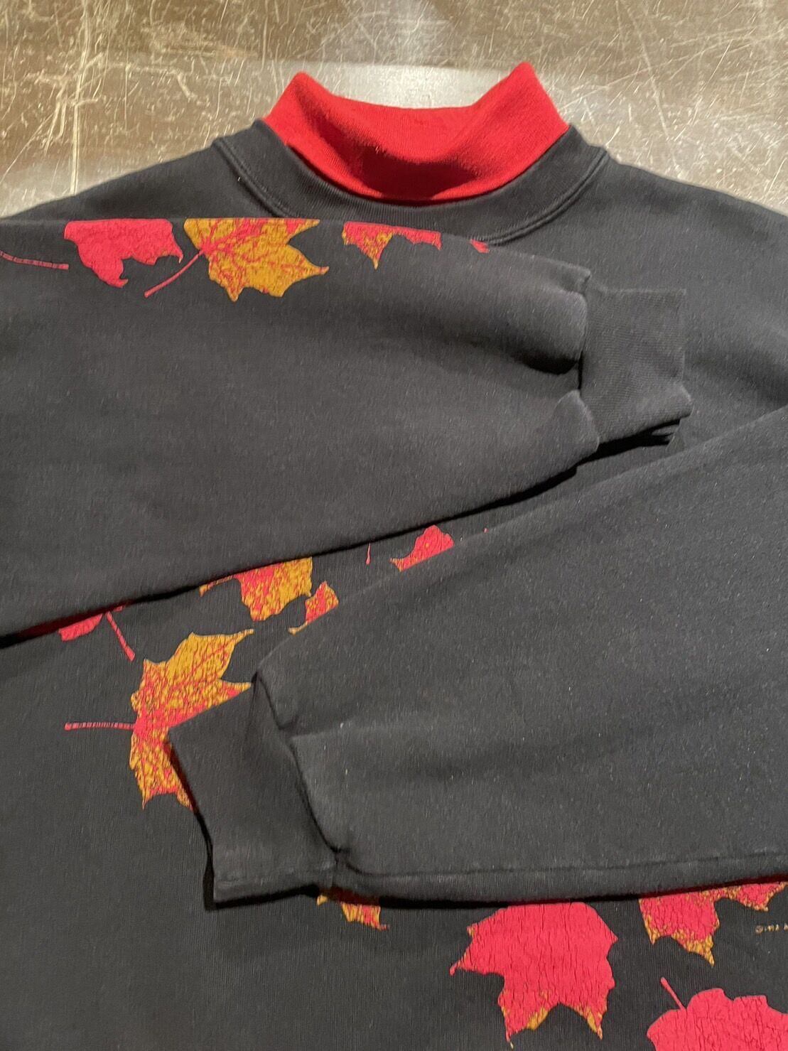 90s ART UNLIMITED アートアンリミテッド 紅葉 プリント ダブルカラースウェットシャツ アメリカ製 Lサイズ ブラック C326