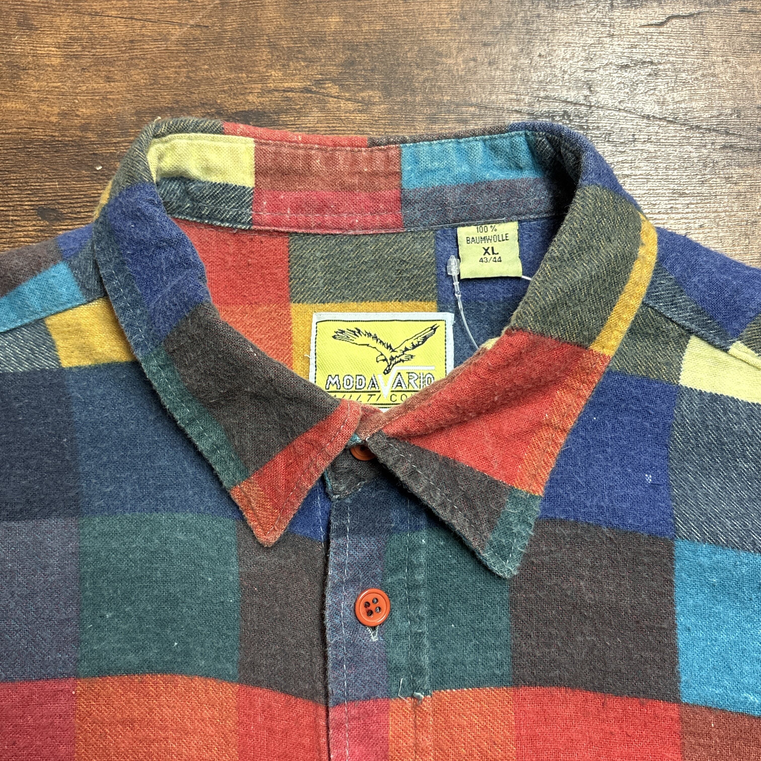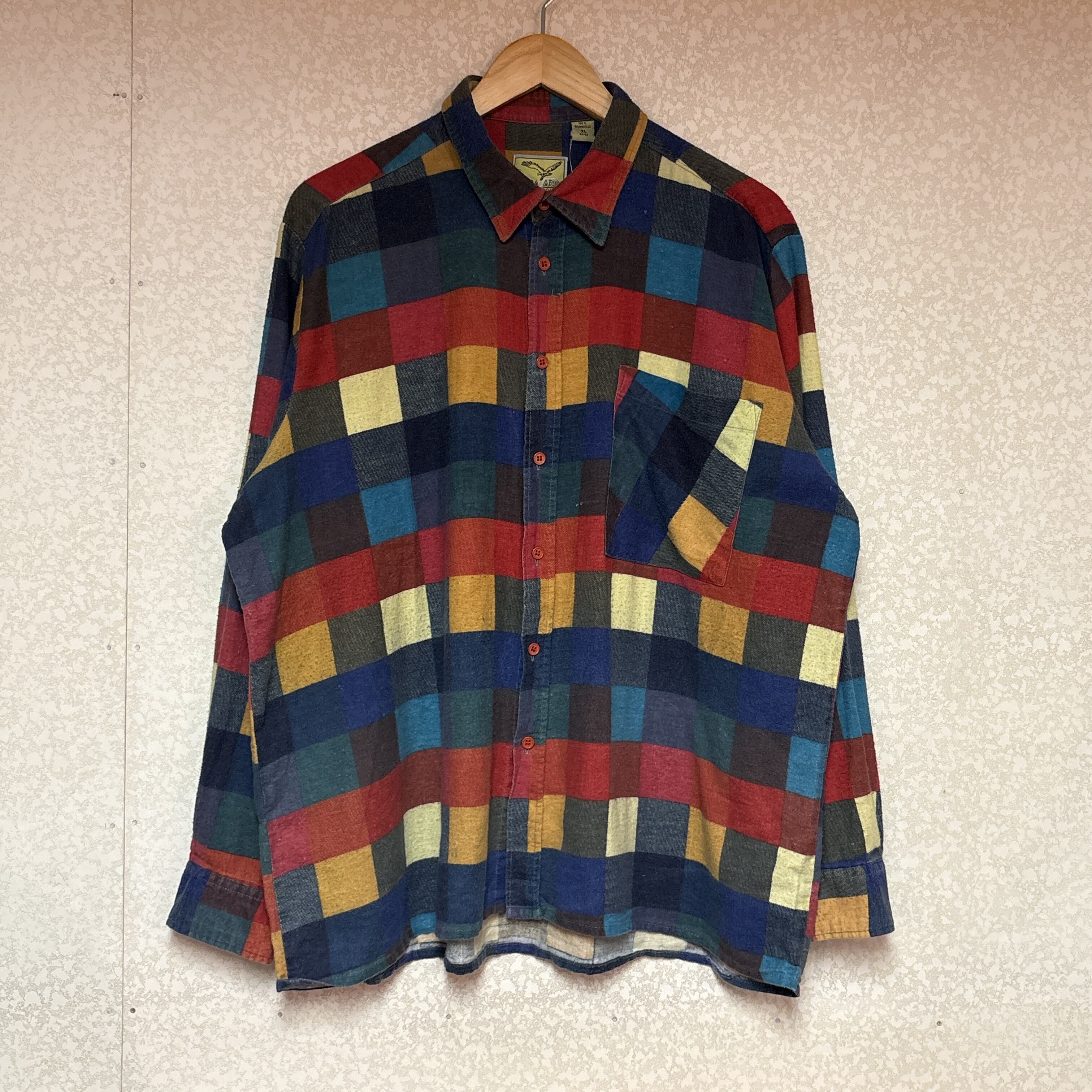 MODA VARIO ユーロ古着 マルチカラー ブロックチェック 長袖シャツ ライトネルシャツ フランネルシャツ モーダ ヴァリオ D551