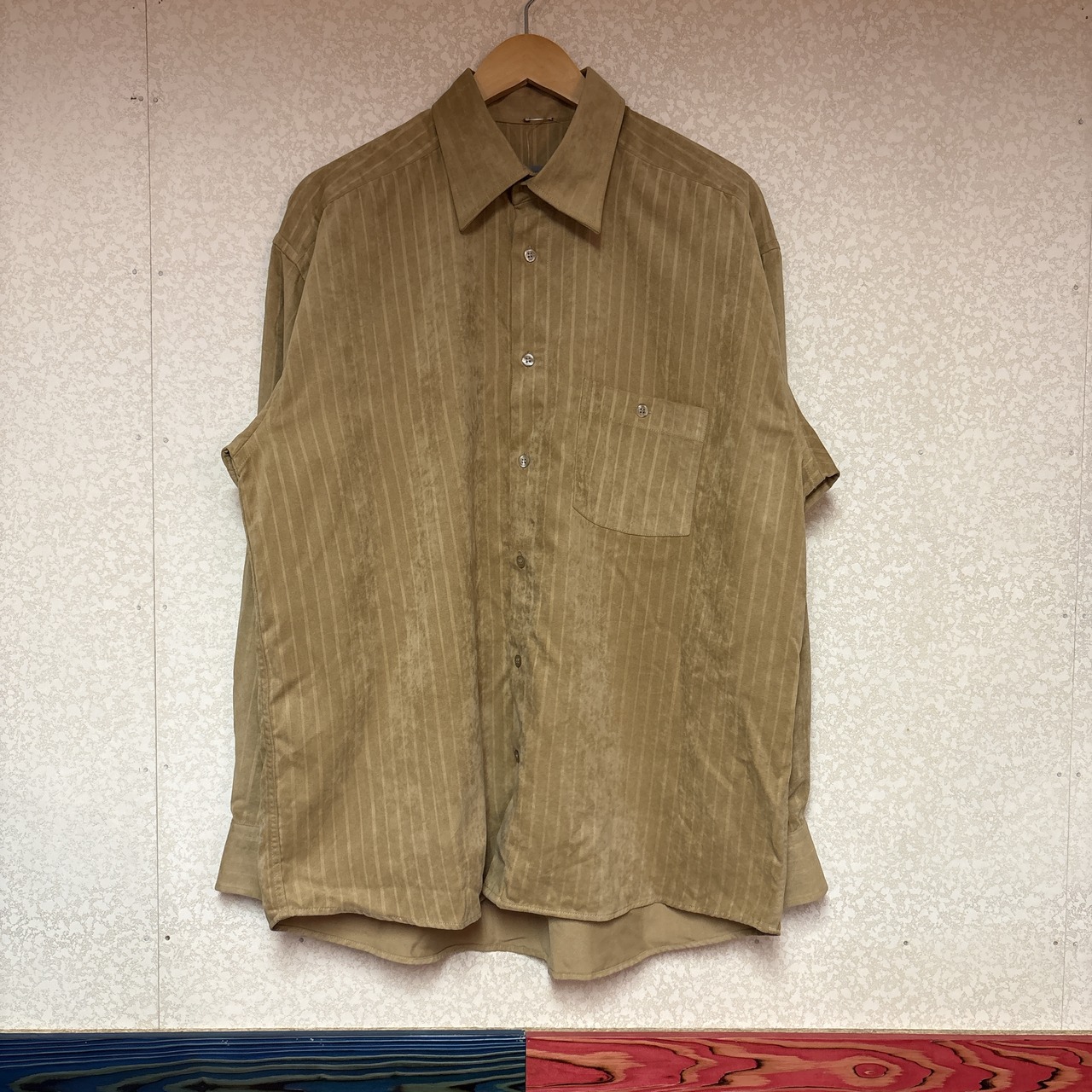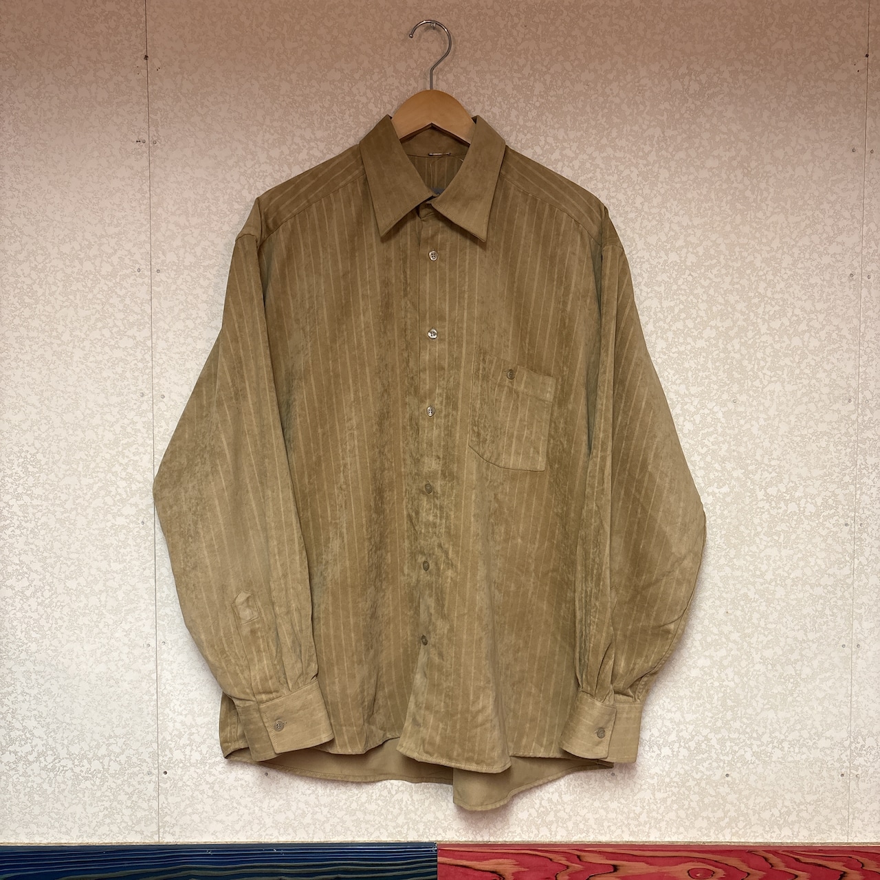 80-90s MIRA collection ユーロ古着 ピーチスキン ストライプシャツ 長袖シャツ フェイクスエードシャツ ミラ コレクション D562