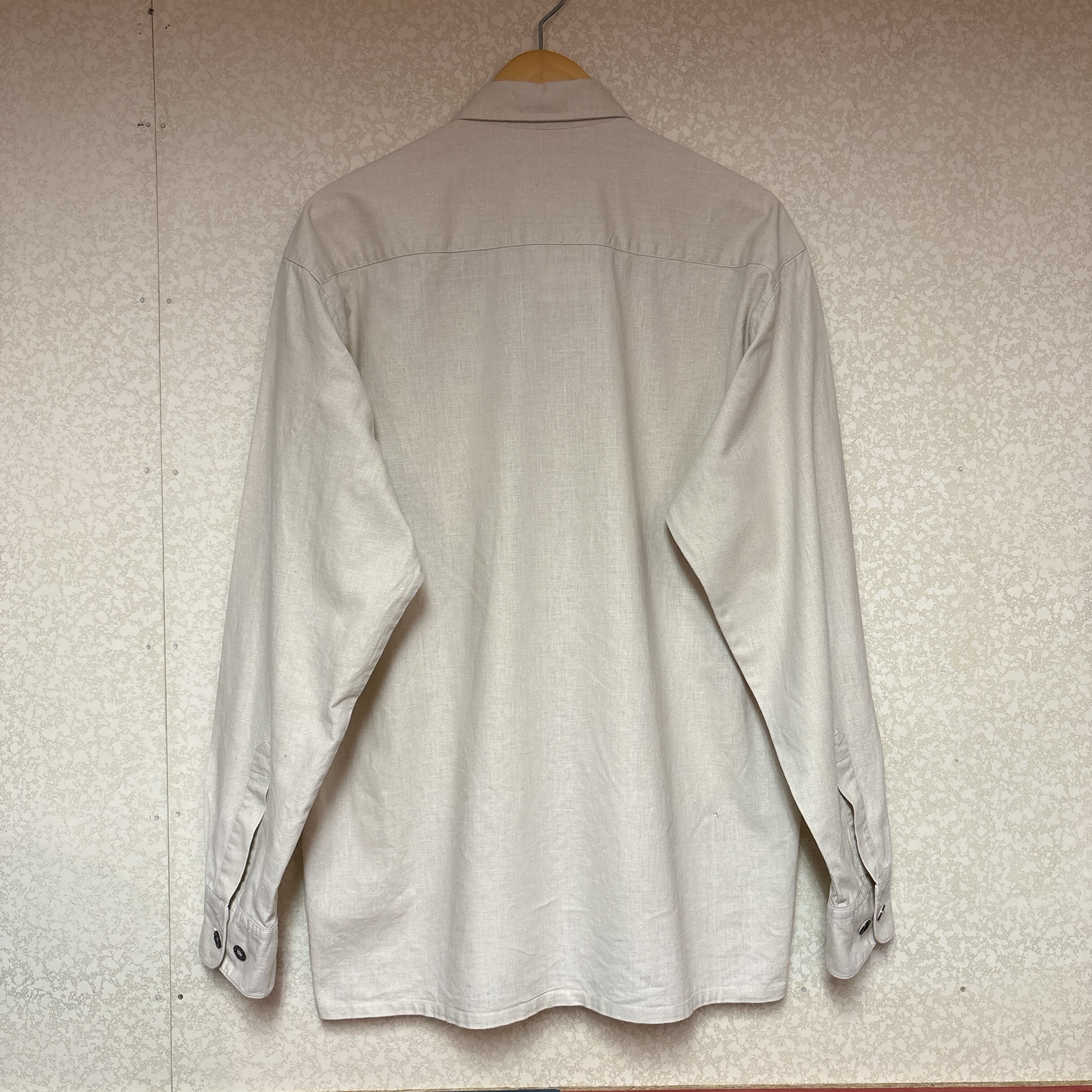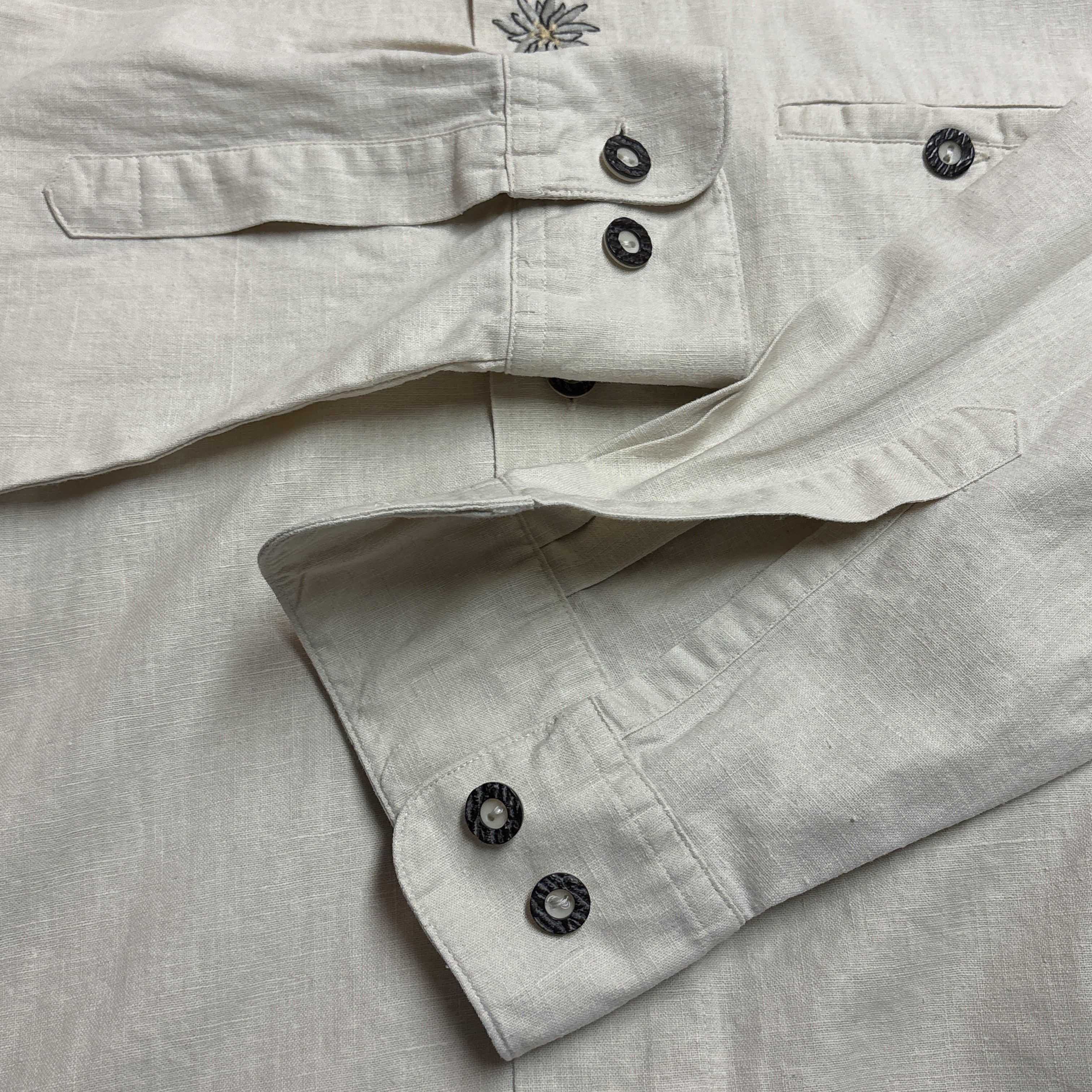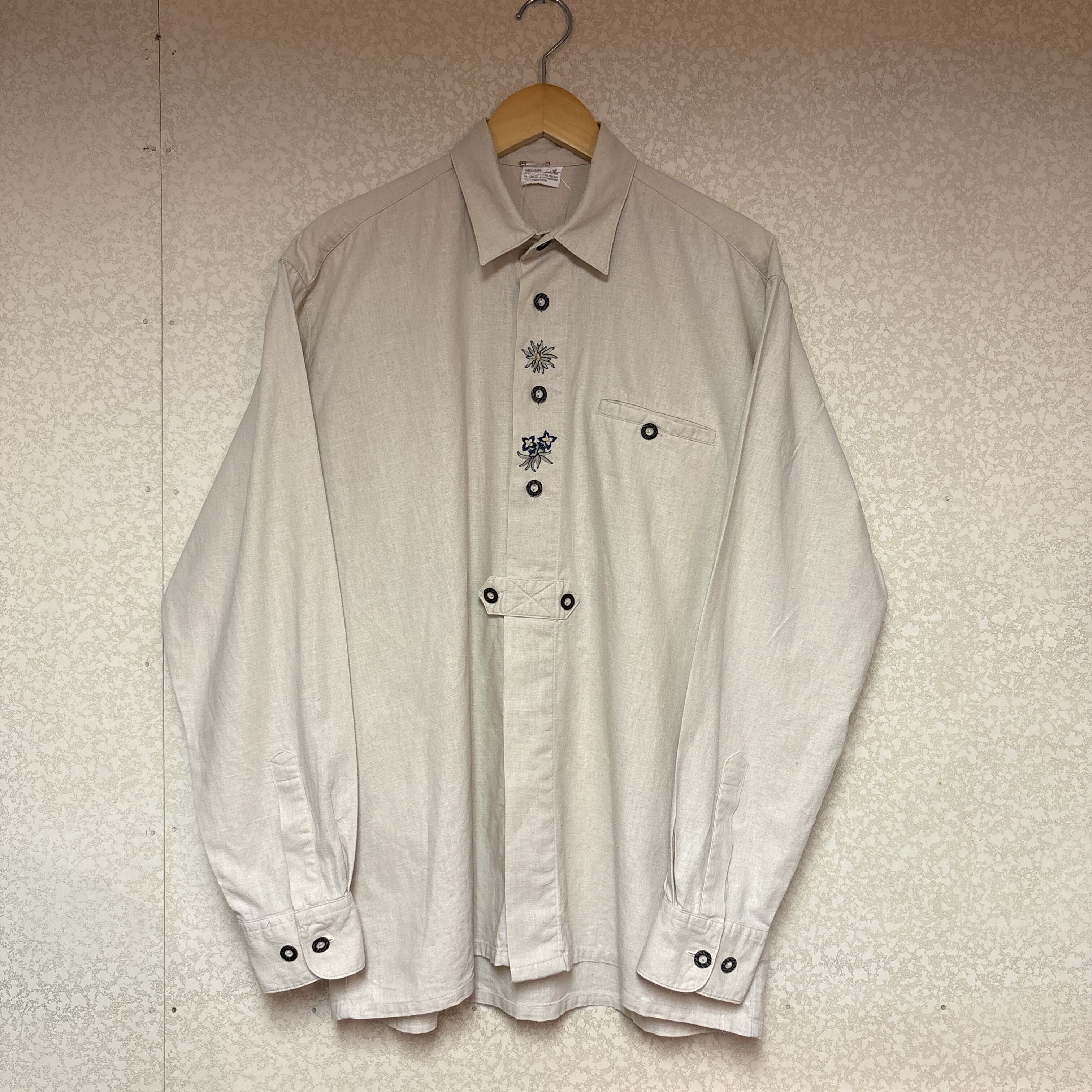 Unknown ユーロ古着 リネン・コットンブレンド チロリアンシャツ 長袖シャツ D563