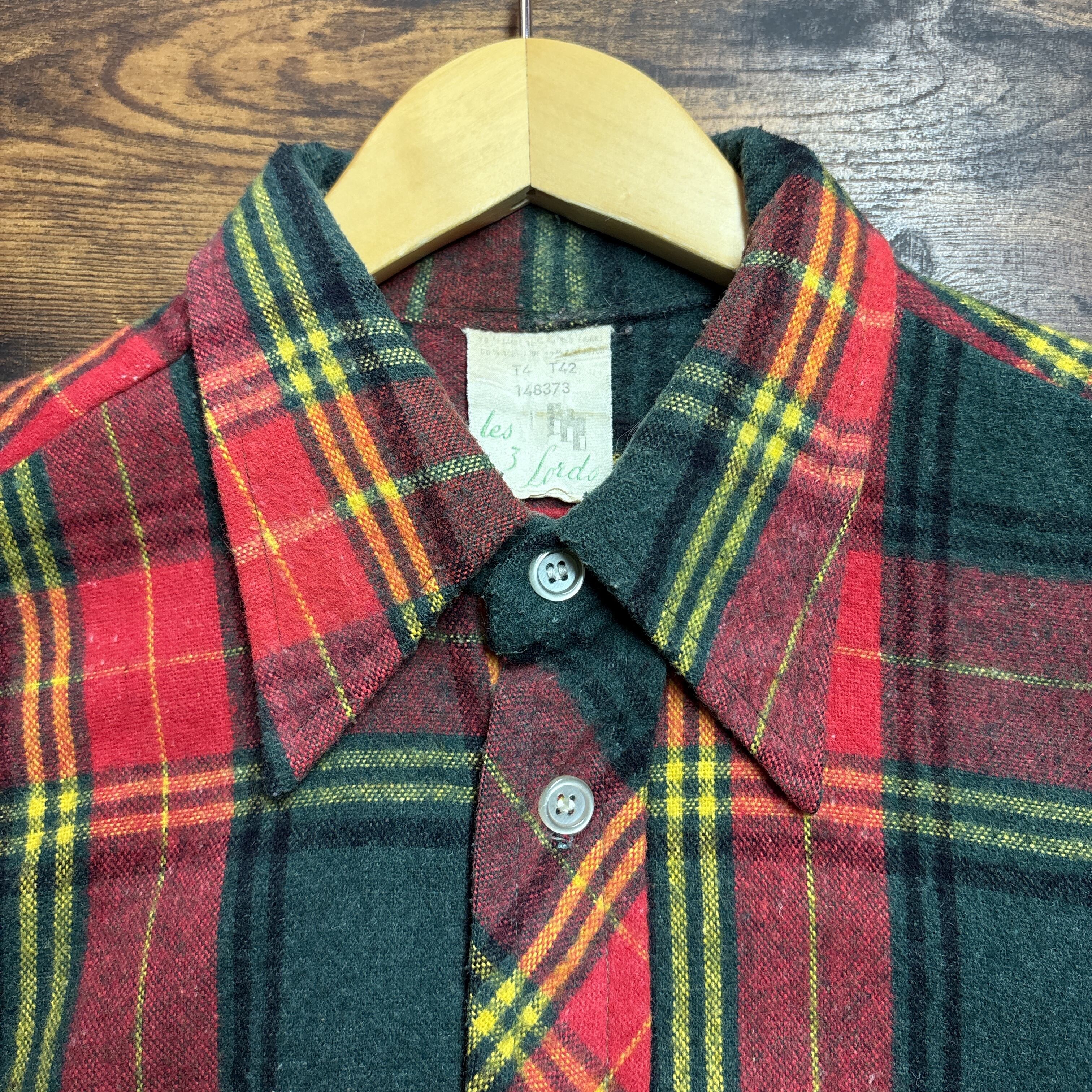 70-80s Les 3 Lords ユーロ古着 アクリルチェックシャツ 長袖シャツ レトロワローズ D595
