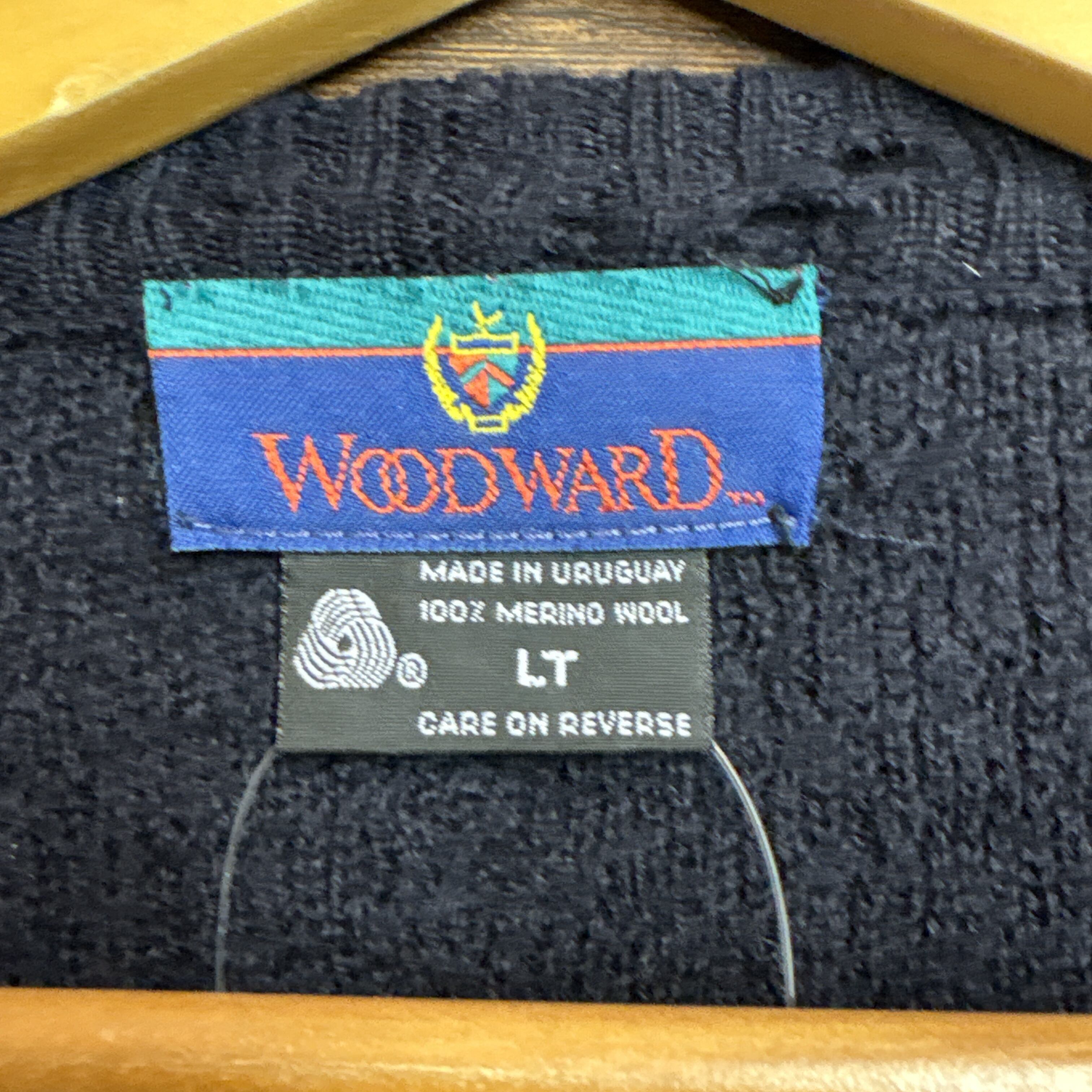 90s WOODWARD ウルグアイ製 メリノウール ダブルポケット ニット カーディガン ウッドワード ダメージニット D629