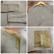 80s RHOVYL ユーロ古着 レザー切替ニット ダブルポケット カーディガン ロービル D631