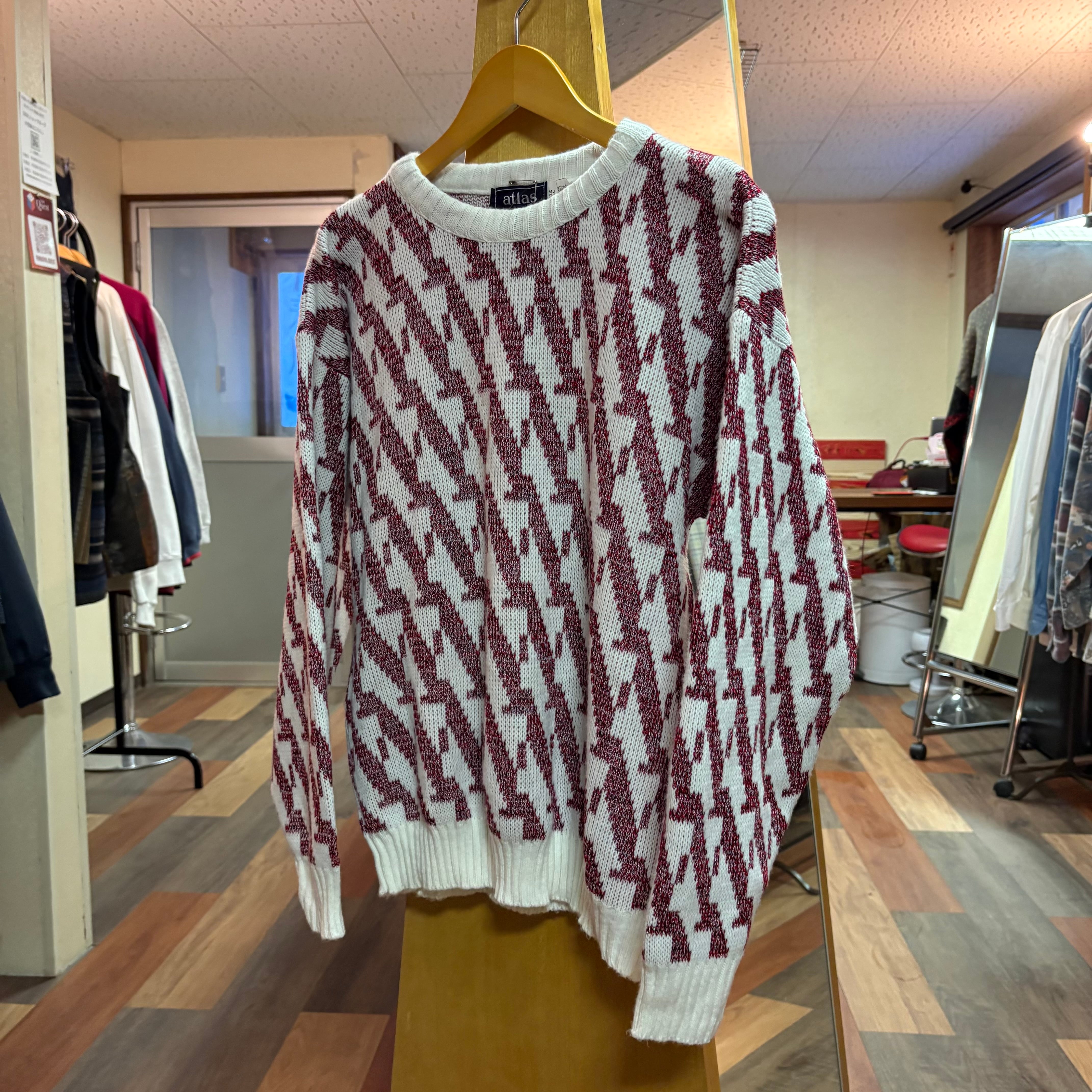 80-90s atlas USA製 オールパターン アクリル ニット セーター アトラス 総柄 D641