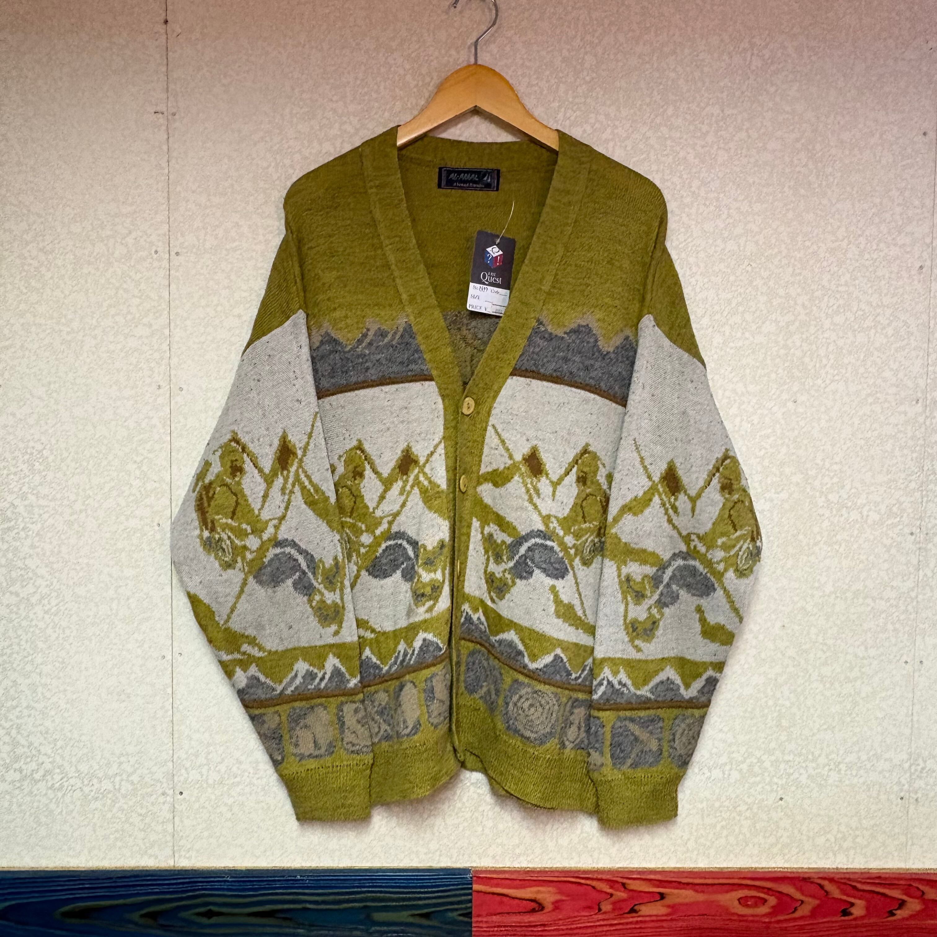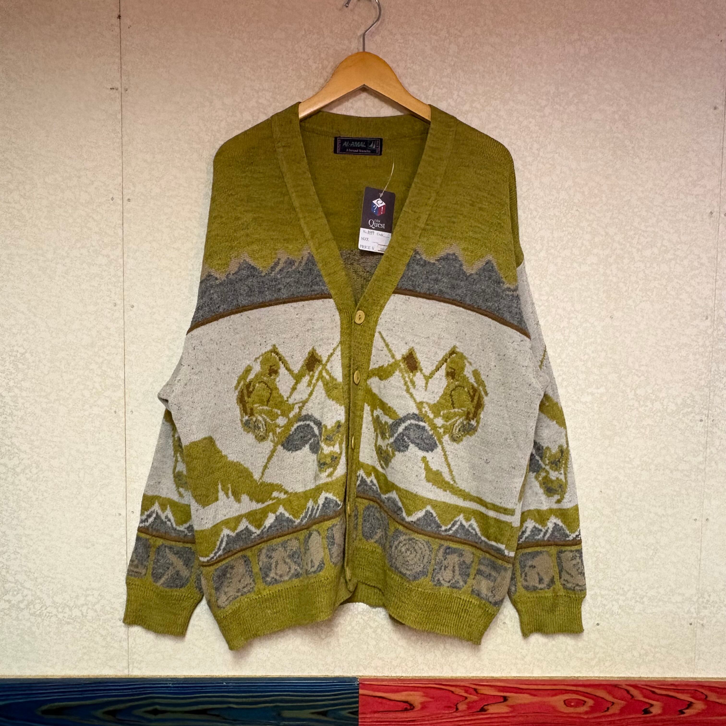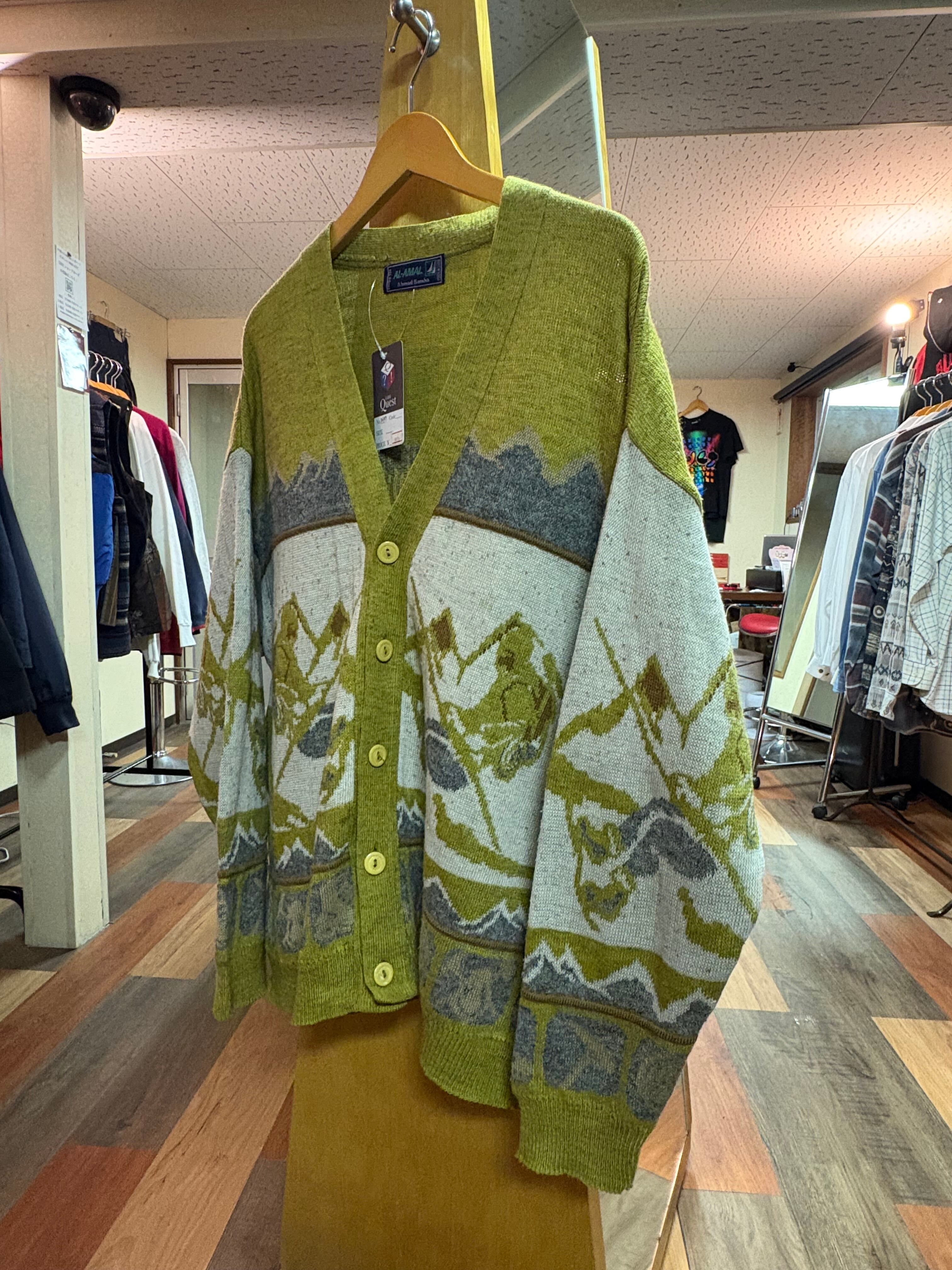 80-90s AL-AMAL 総柄 ウール ニット カーディガン D647