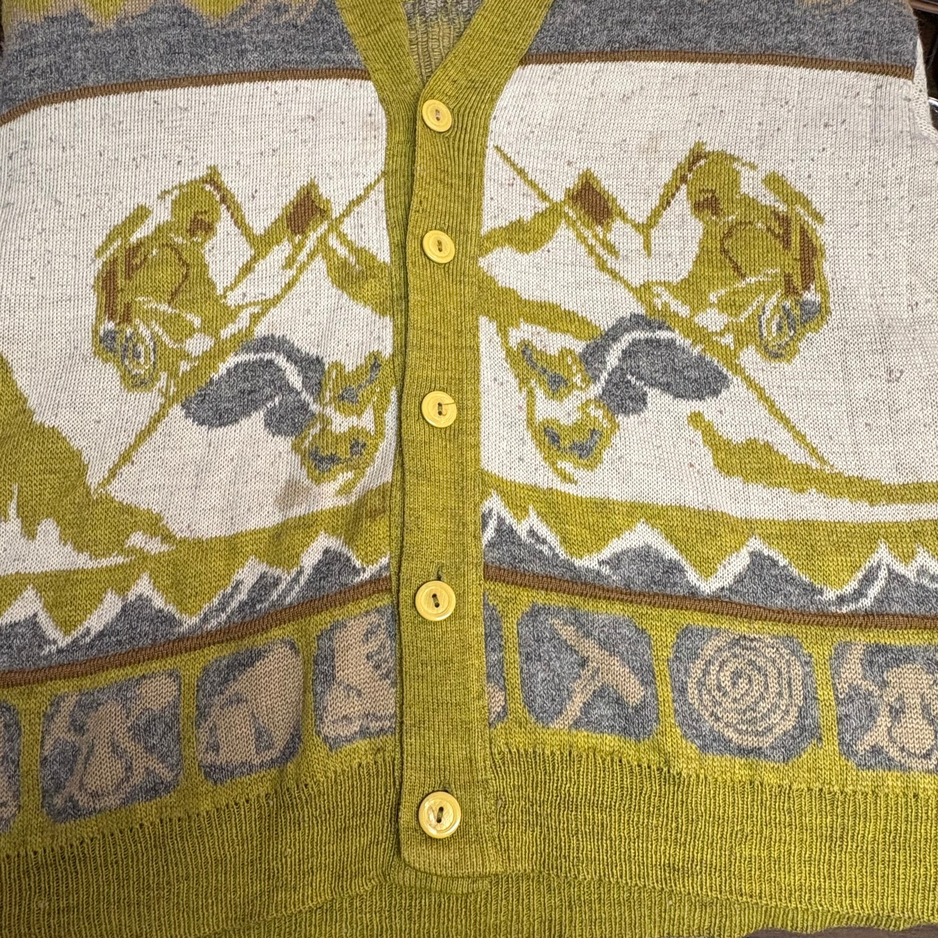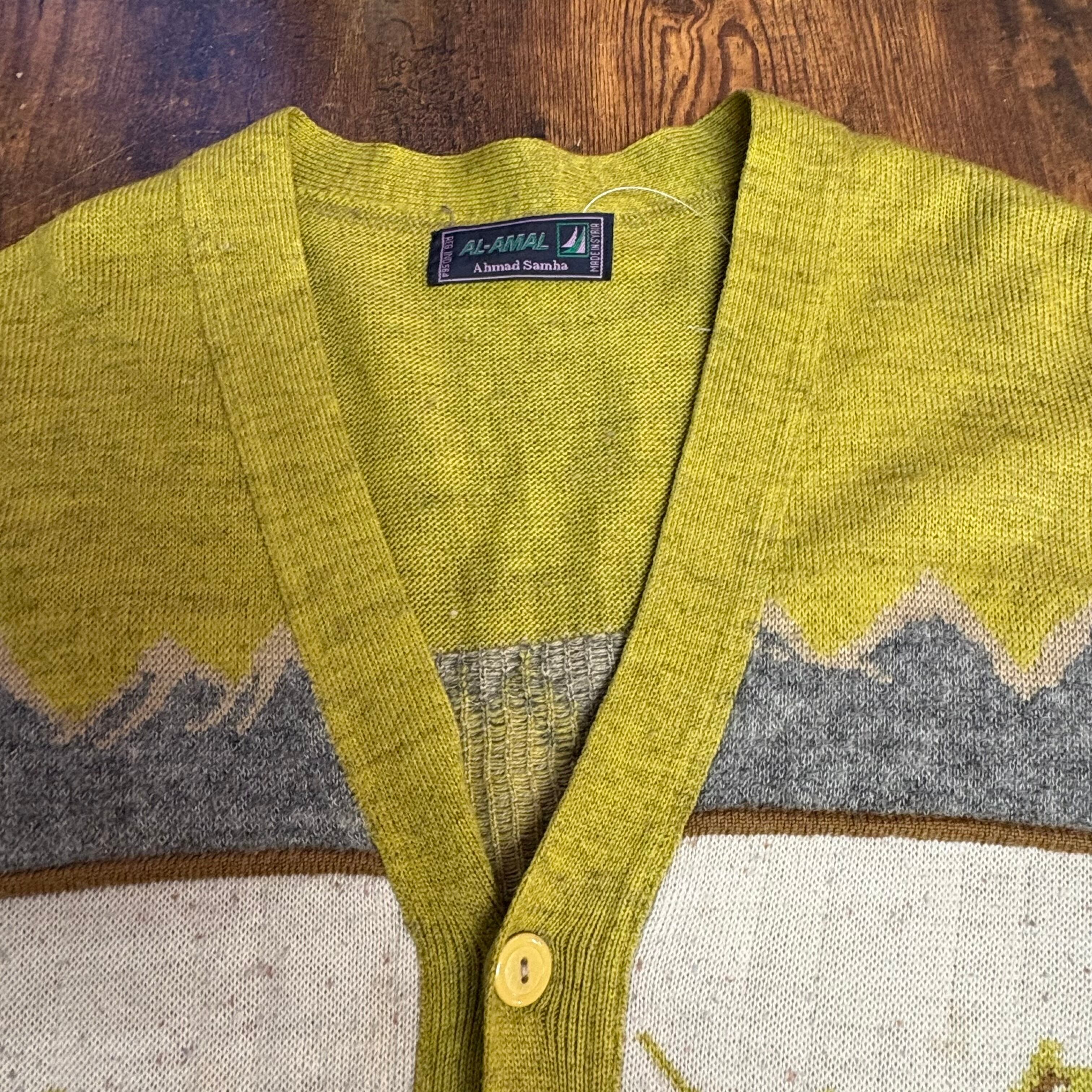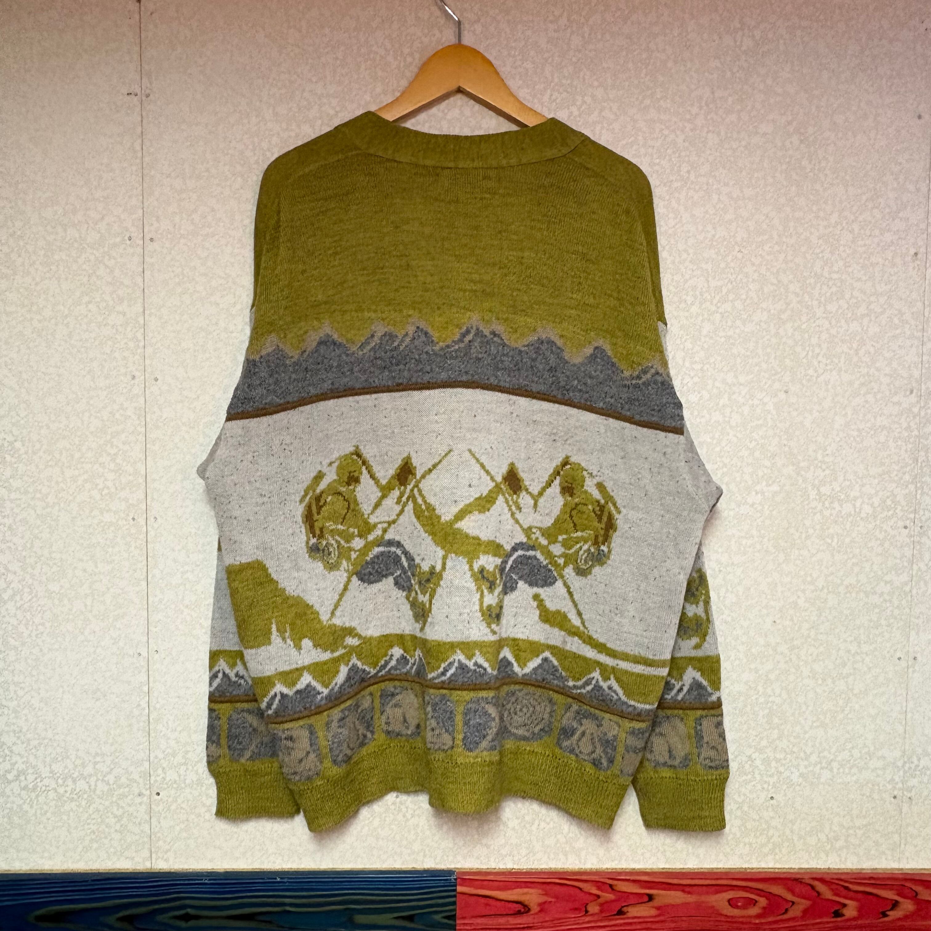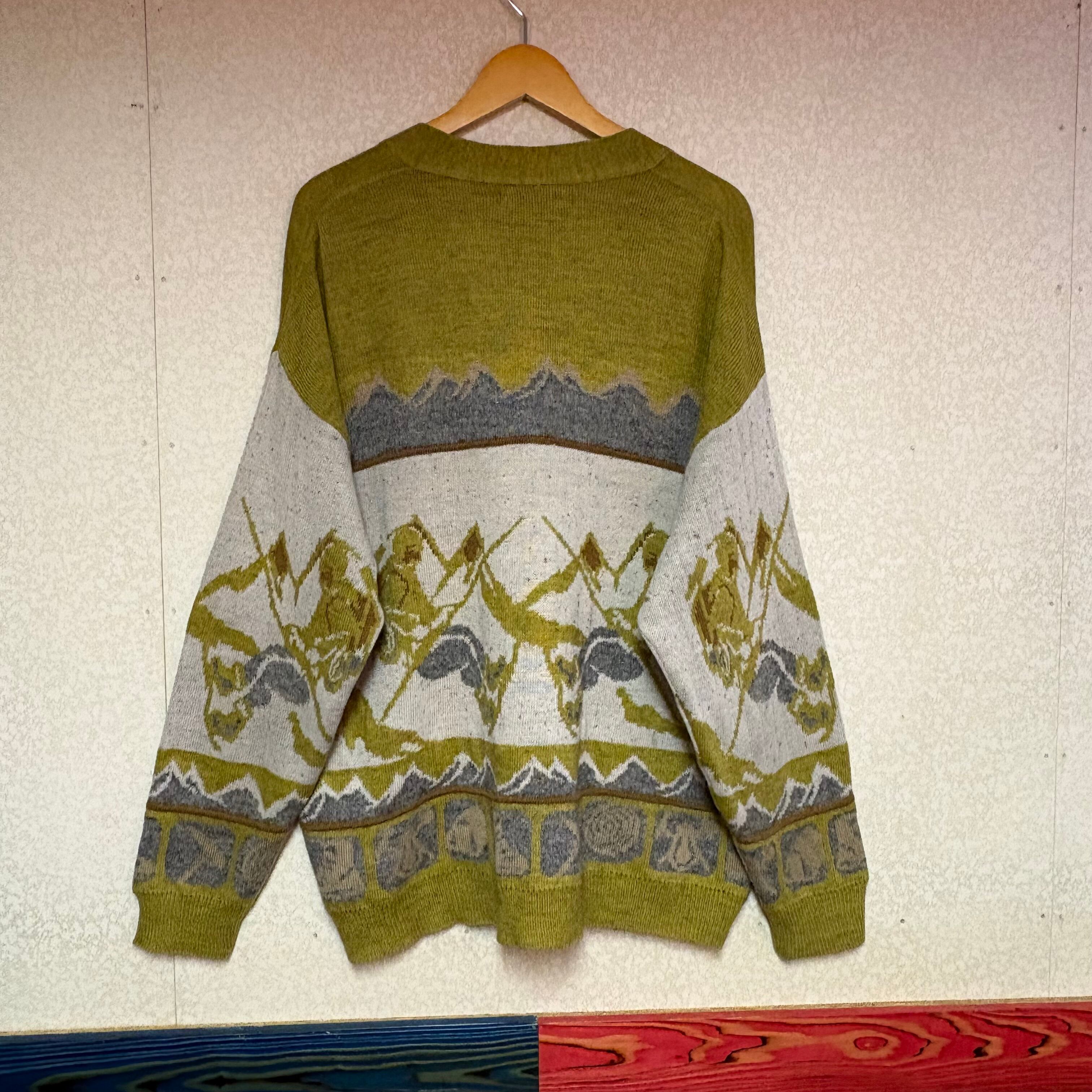 80-90s AL-AMAL 総柄 ウール ニット カーディガン D647