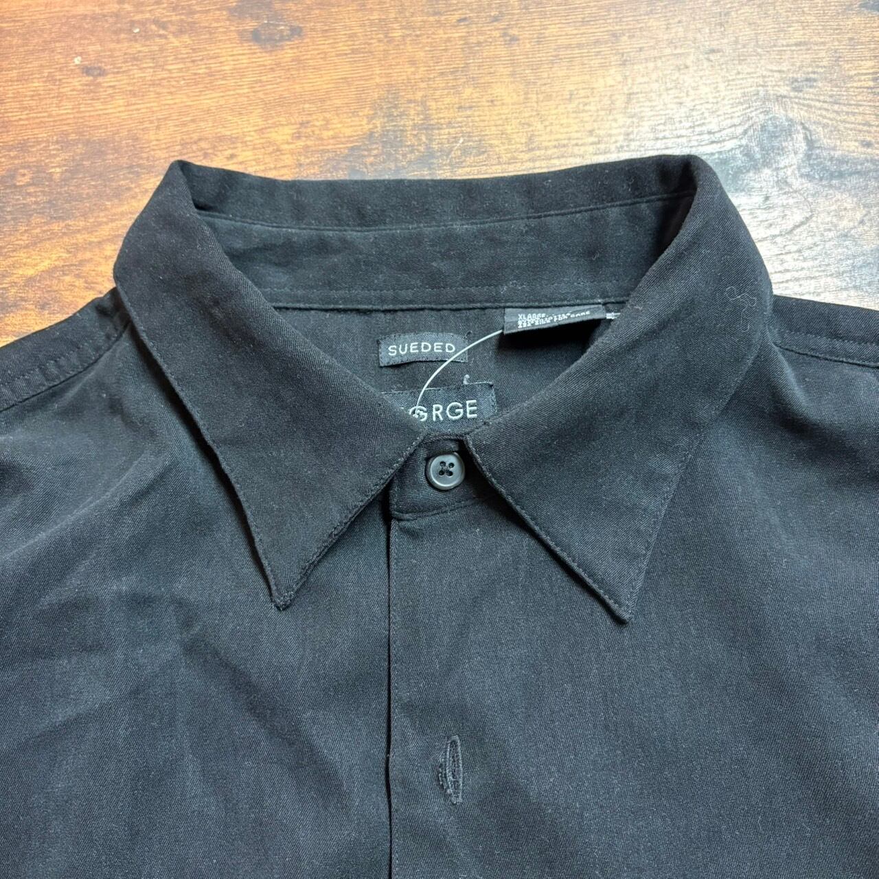 GEORGE ダブルフラップポケット フェイクスエードシャツ 長袖シャツ ブラック D560