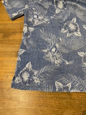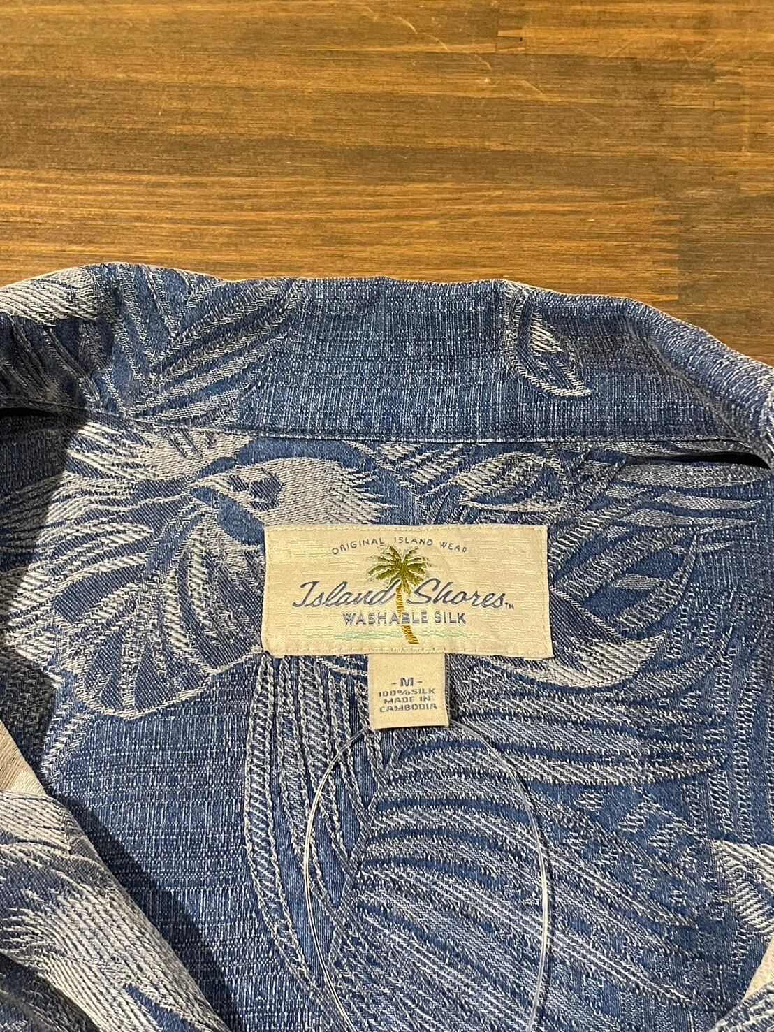 Island Shores 織柄 ハワイアンシャツ オープンカラー 半袖 シャツ アロハ シルク ブルー D199