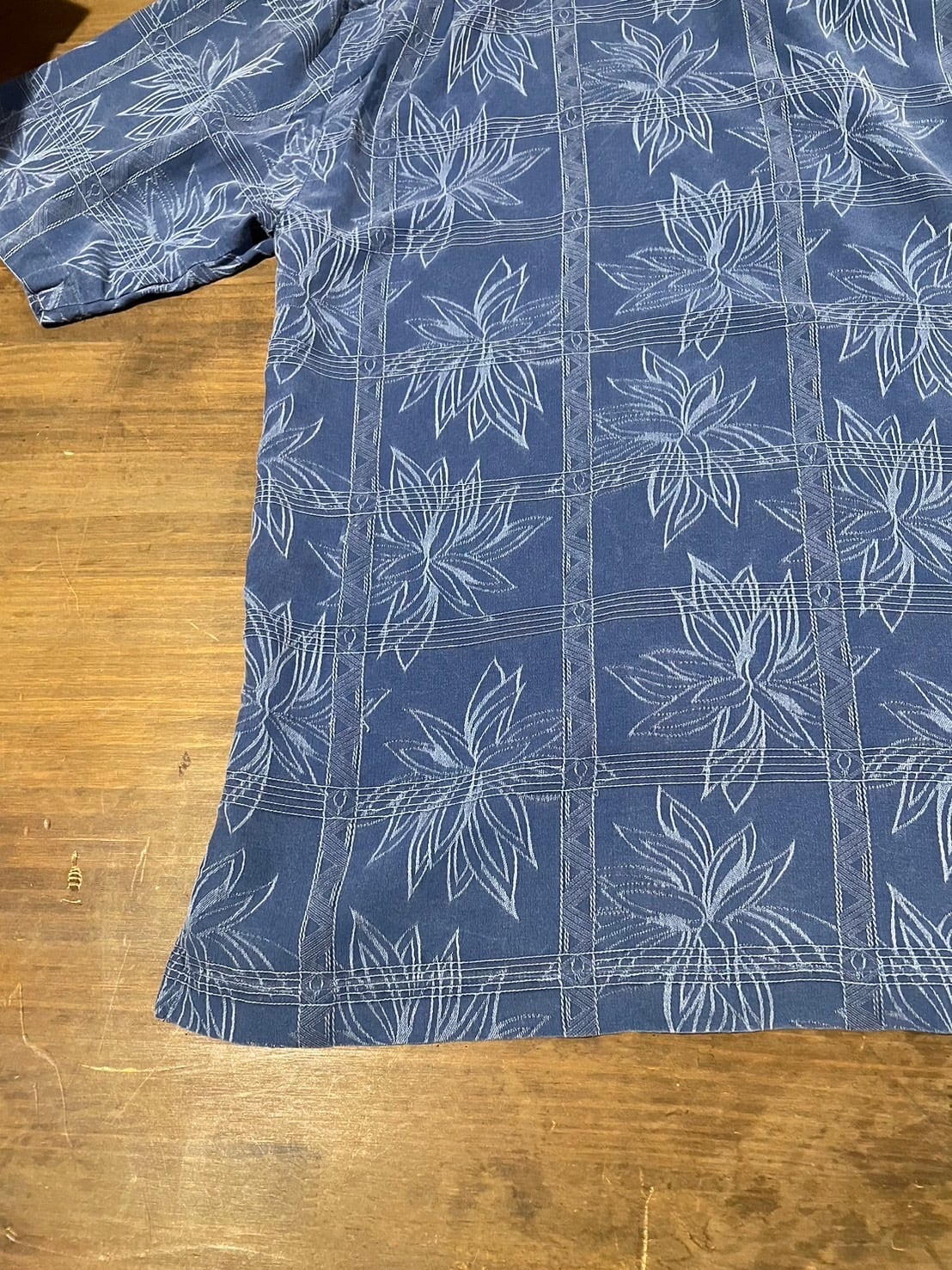 JAMAICA JAXX 織柄 ハワイアンシャツ 半袖シャツ オープンカラー シルク ブルー D200
