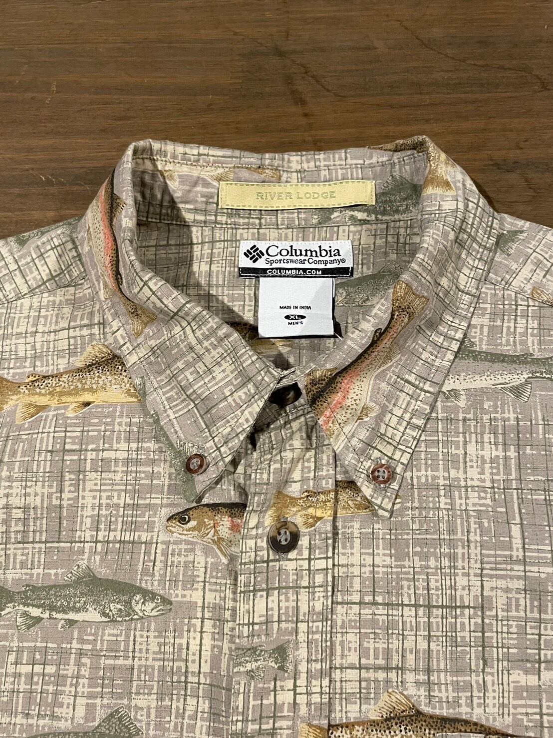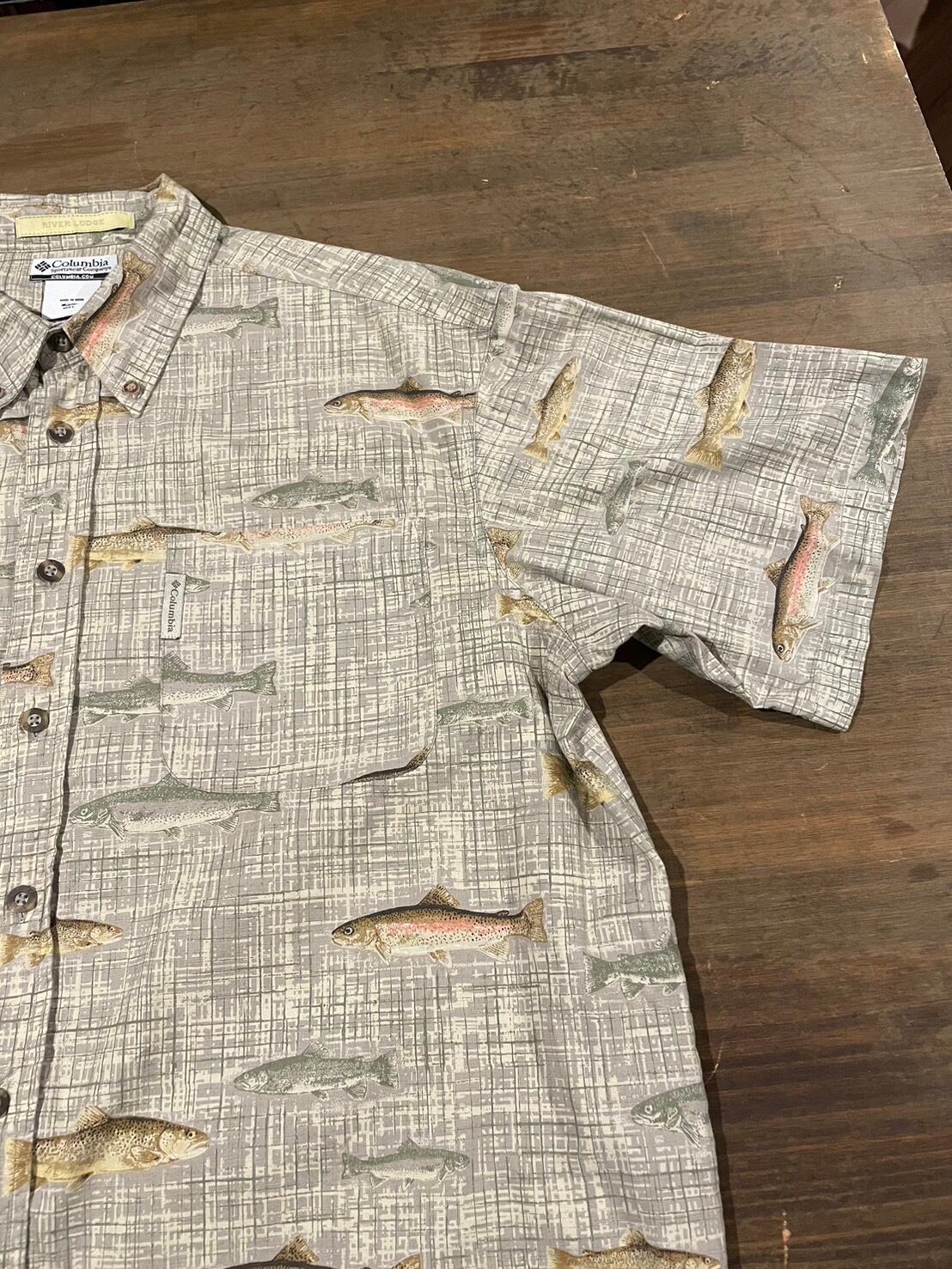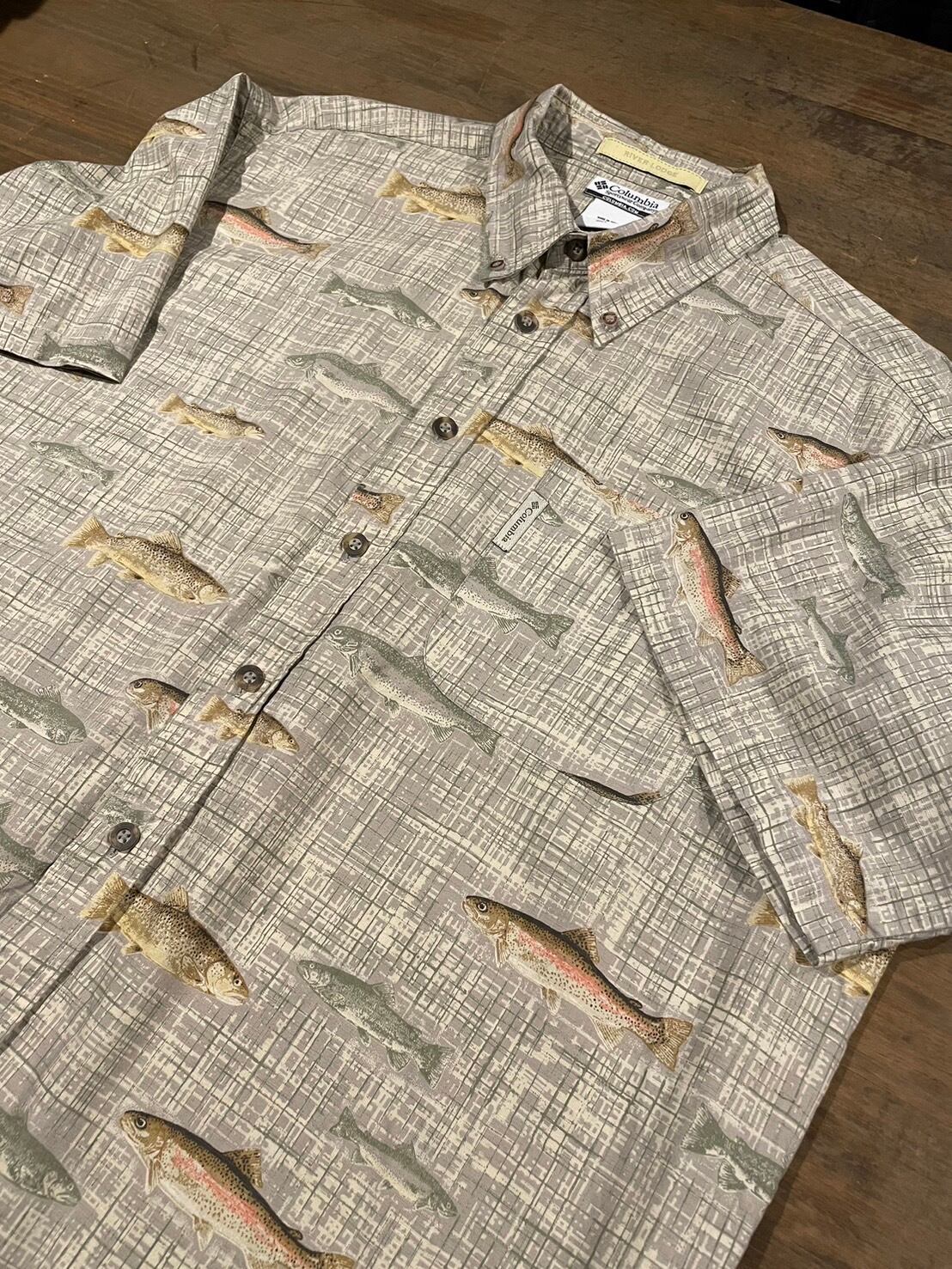 Columbia コロンビア 魚柄 フィッシュ ボタンダウン RIVER LODGE 半袖 シャツ D205