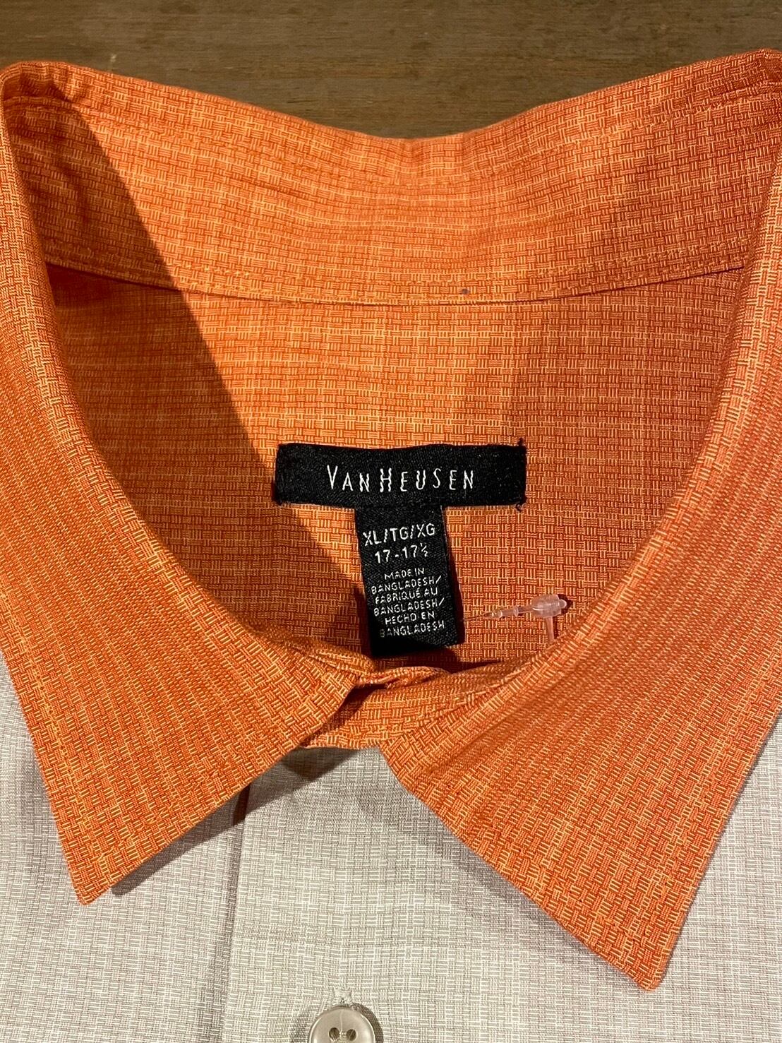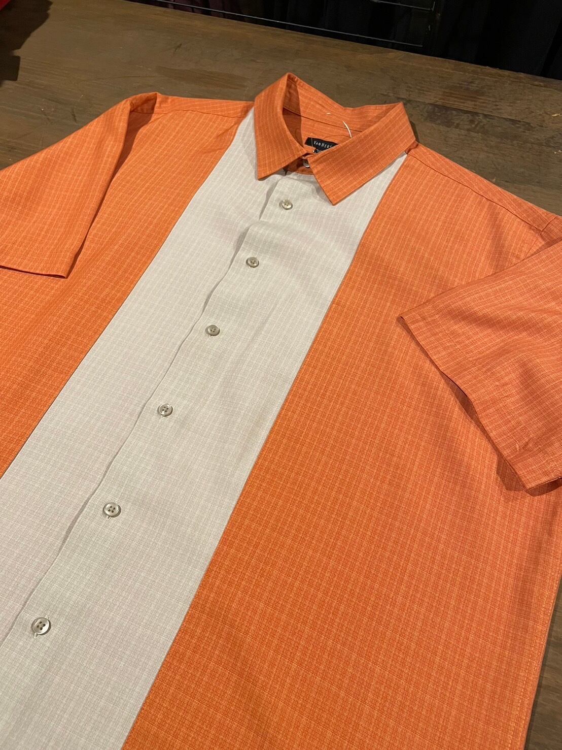 VAN HEUSEN ヴァンヒューゼン ツートン ラインシャツ 半袖シャツ オレンジ D211