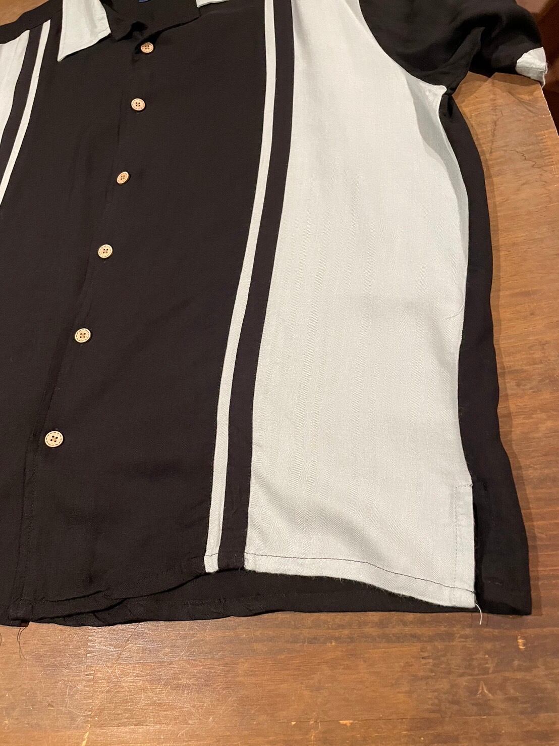 6611 ツートンライン レーヨン 半袖シャツ