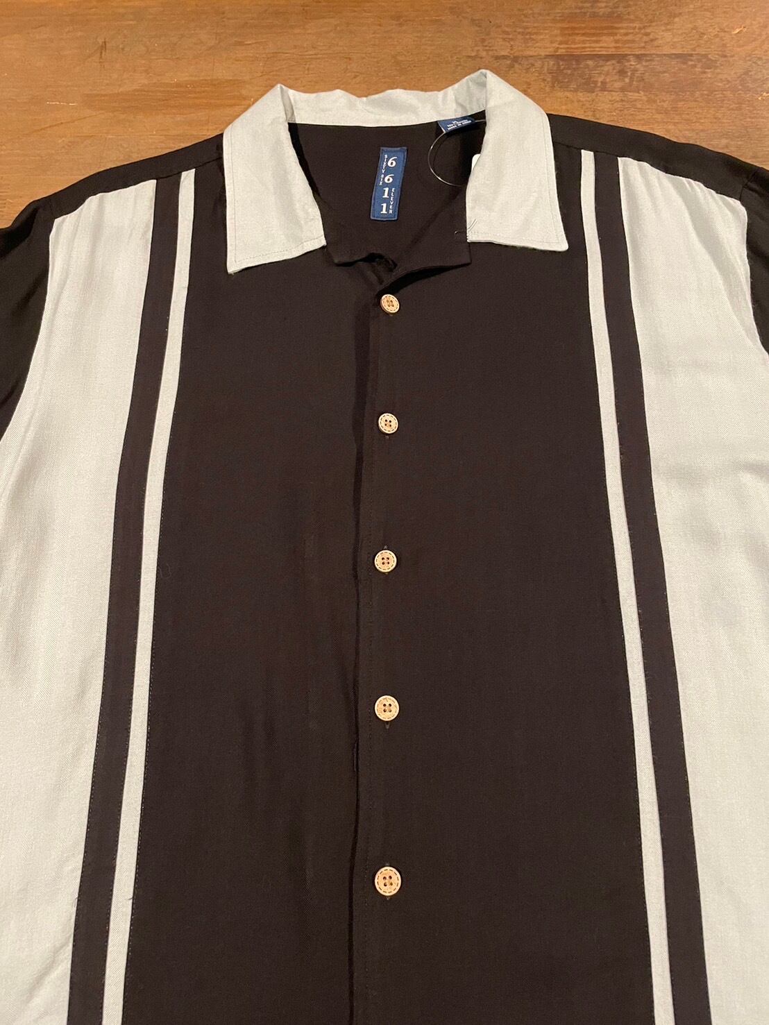 6611 SIXTY SIX ELEVEN ツートン ラインシャツ 半袖 レーヨン シャツ D212