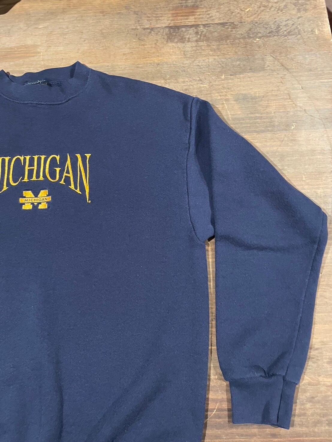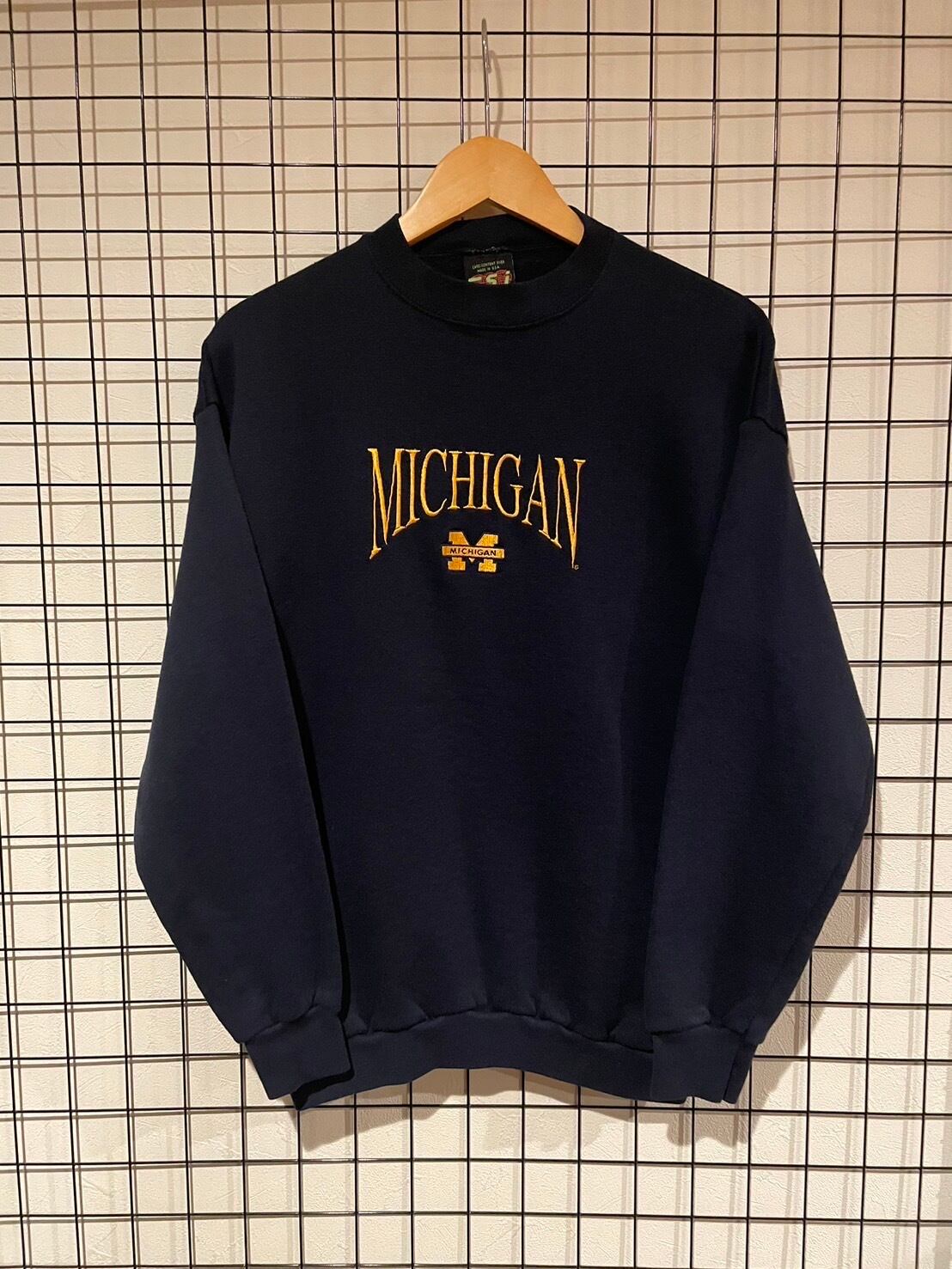 90s TSi カレッジロゴ 刺繍 ミシガン大学 スウェットシャツ アメリカ製 ネイビー D306
