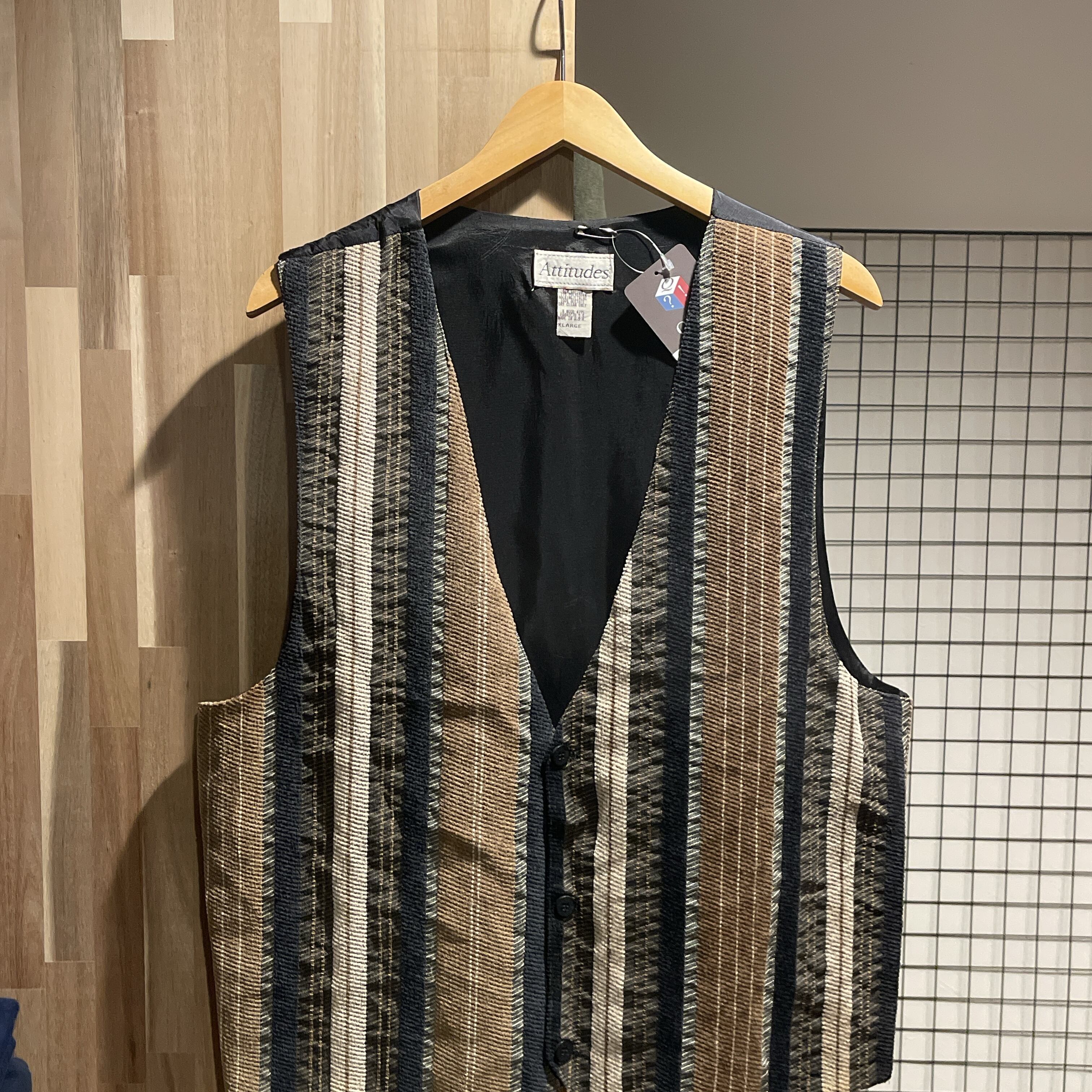 80s-90s Attitudes USA製 織柄ストライプ テーラードベスト D334