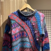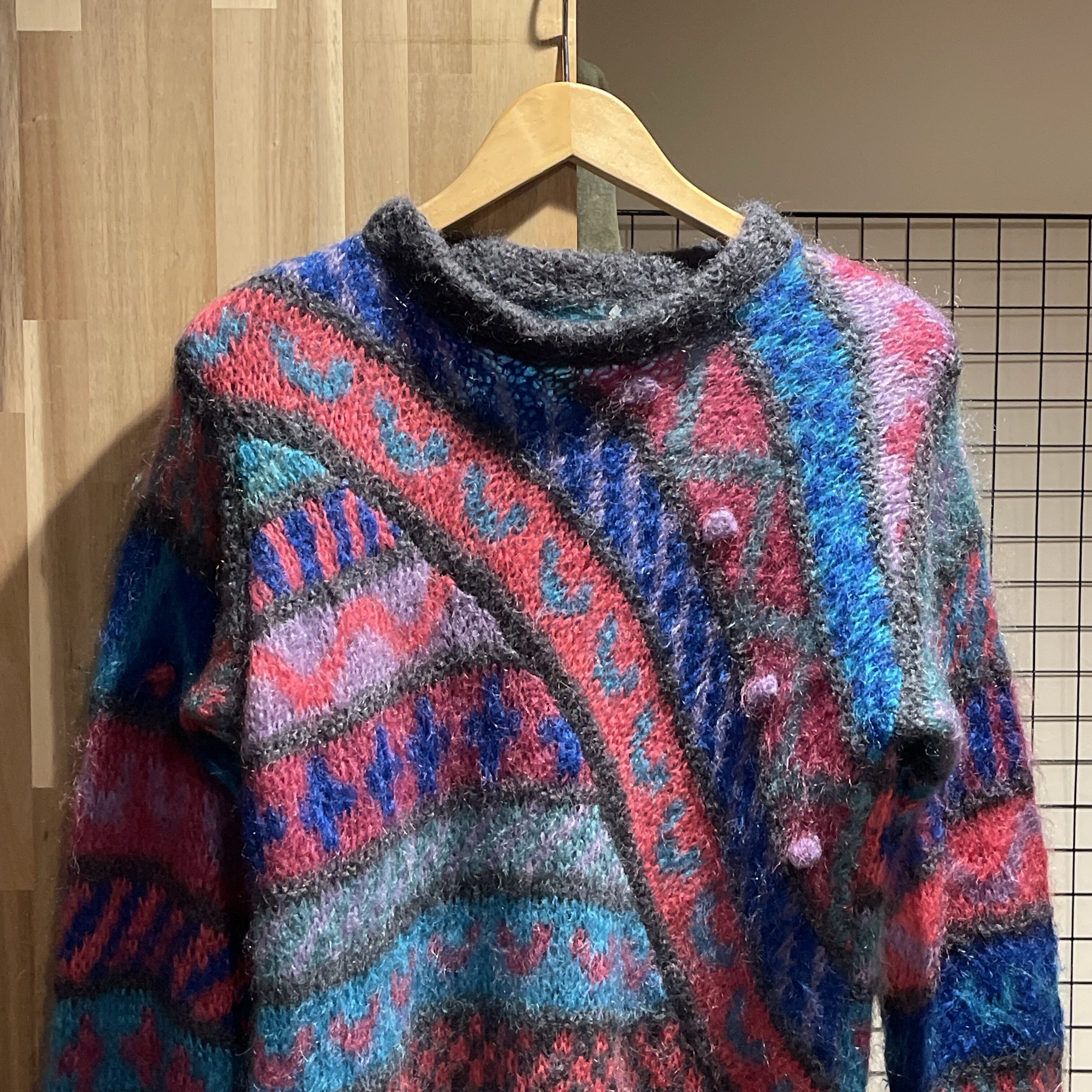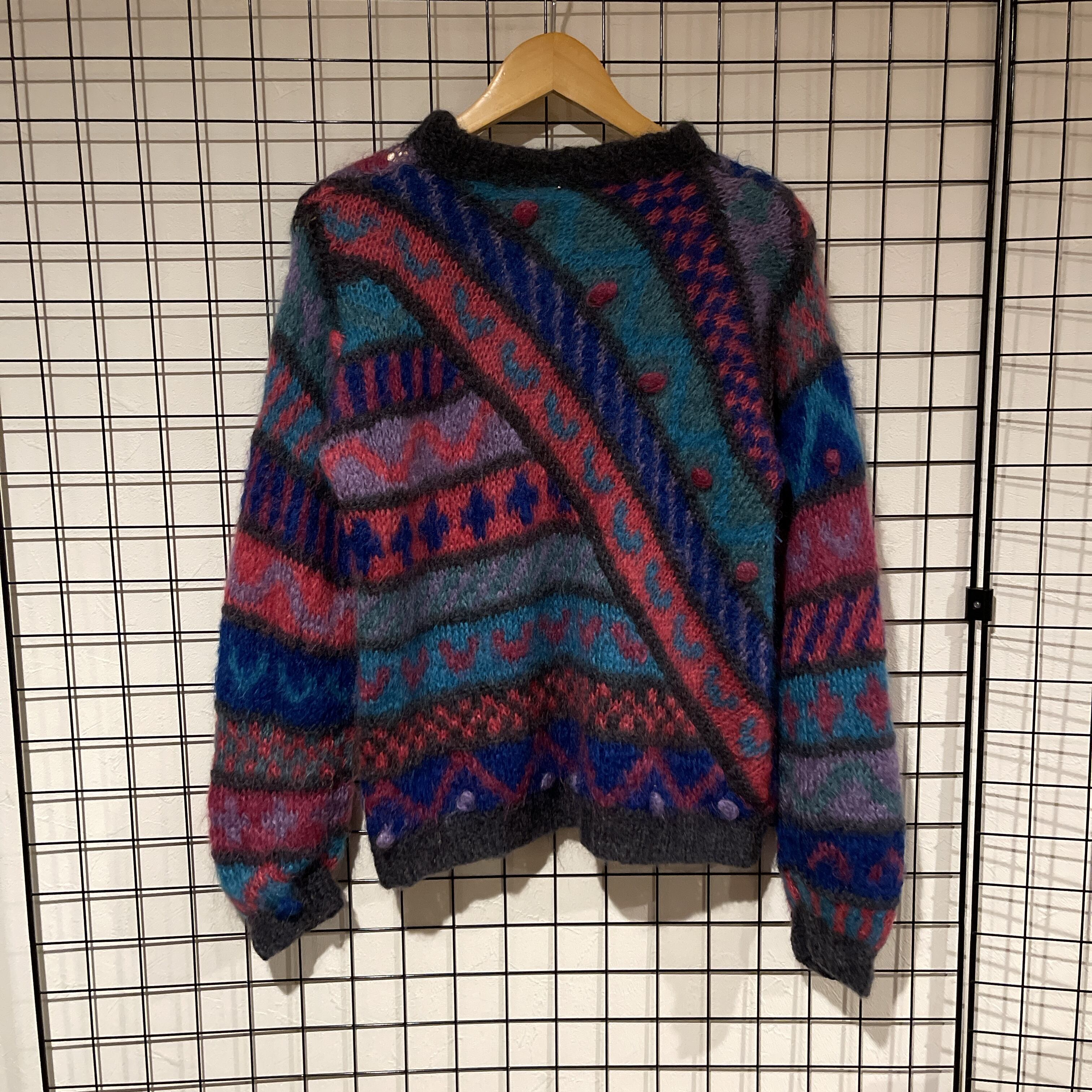 Unknown モヘア調 総柄 ニットセーター D438 レディース オールパターン モヘア ニット