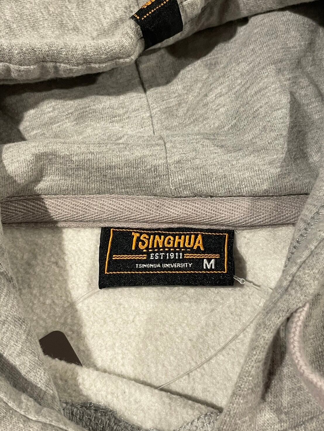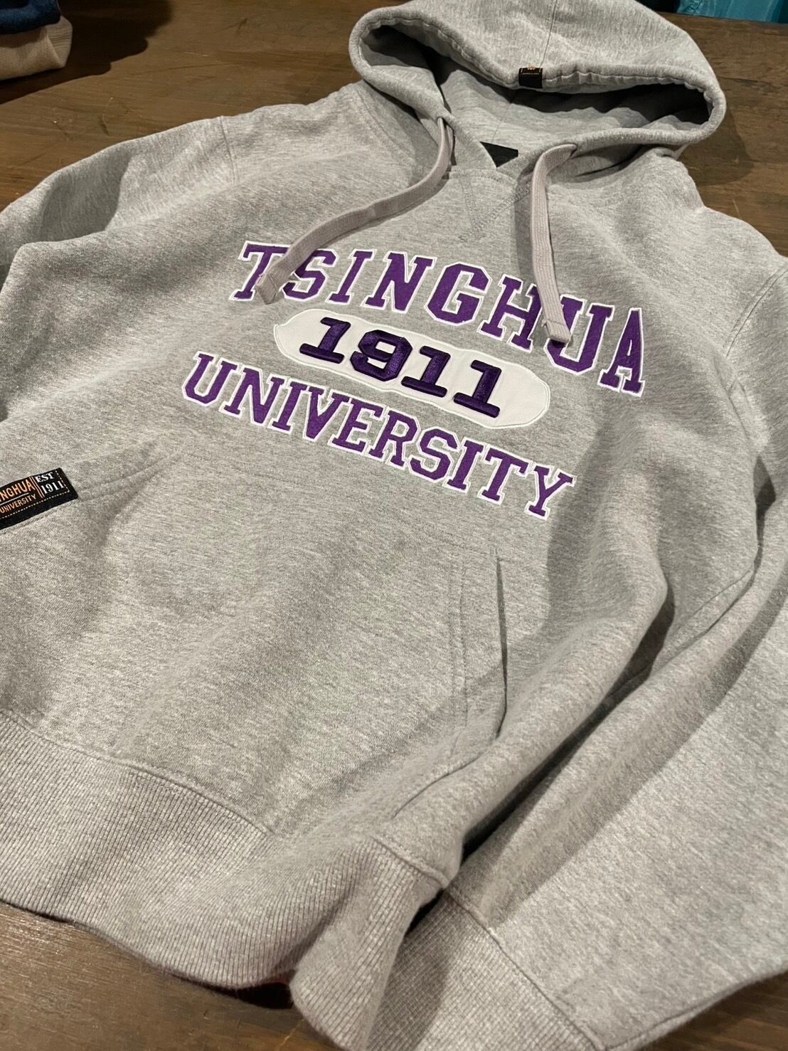 TSINGHUA カレッジ系 刺繍 TSINGHUA UNIVERSITY スウェットパーカー グレー D425